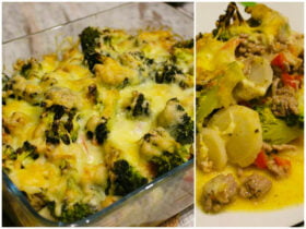 LowCarb herzhafte Petersilienwurzel-Hackfleisch-Auflauf mit Brokkoli und Käse