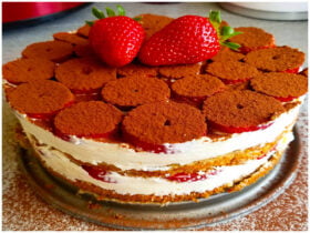 Erdbeer Tiramisu Torte mit cremiger Mascarpone und einem Hauch von Espresso