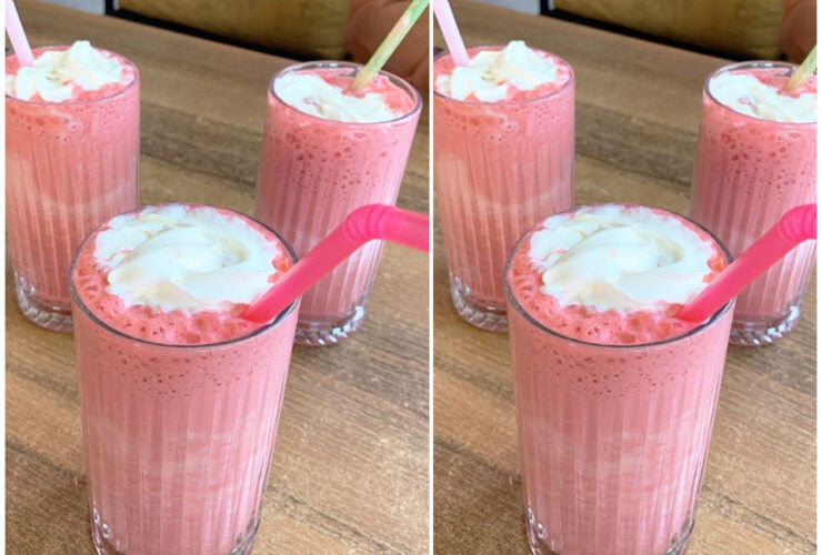 Zutaten: Zubereitung: Zutaten Mischen: Gib die Mandelmilch, Schlagsahne, gefrorenen Erdbeeren, Molkenproteinpulver, Chiasamen und Vanilleextrakt in einen Mixer.Wenn du eine dickere Konsistenz bevorzugst, füge eine Handvoll Eiswürfel hinzu. Mischen bis glatt: Mixe die Mischung auf hoher Stufe, bis sie glatt und ...