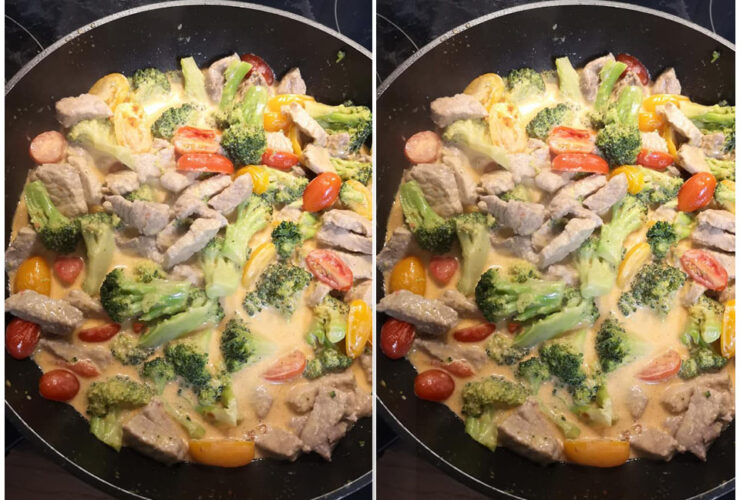 Zutaten: Zubereitung: Das Schnitzel in mundgerechte Stücke schneiden und in einer Pfanne anbraten, bis es goldbraun ist.Brokkoli in kleine Röschen teilen und zu den Schnitzelstücken hinzufügen.Datteltomaten halbieren und ebenfalls in die Pfanne geben.Eine großzügige Menge Sahne hinzufügen, um eine cremige ...