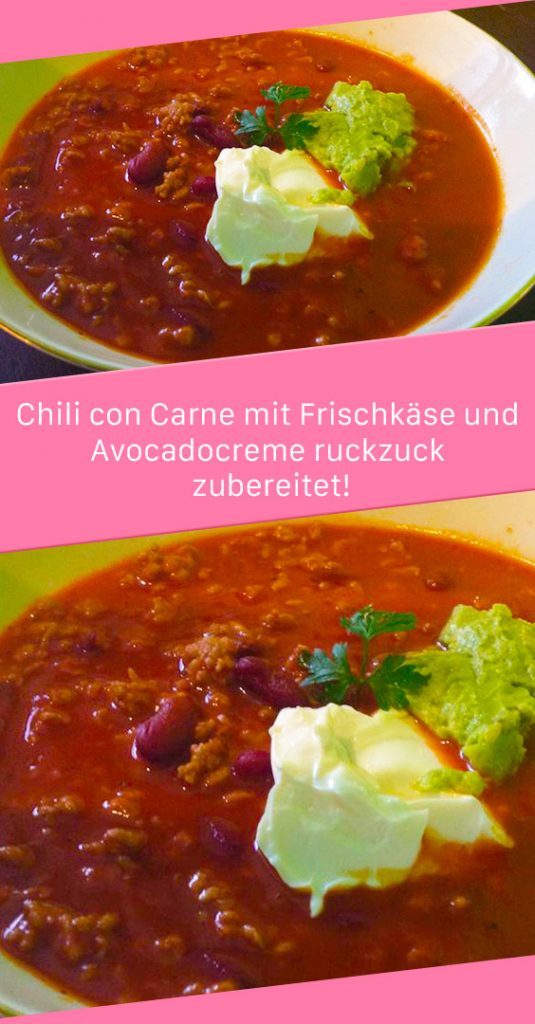 Chili con Carne mit Frischkäse und Avocadocreme ruckzuck zubereitet!