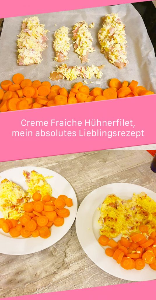 - die Hühnerfilets mit der Schinken-Käse-Creme Fraiche-Fülle je nach Lust und Laune befüllen (ich übertreibe gern mit der Fülle, da ich Creme Fraiche liebe )
