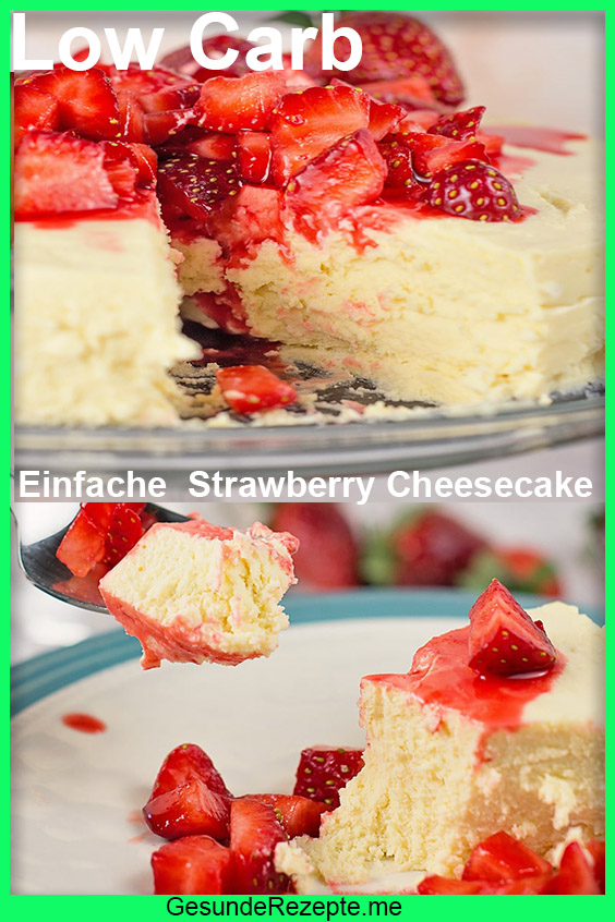 Ist die Glasur halbwegs fest, stellt man den Cheesecake über Nacht in den Kühlschrank. Dort bekommt er seine richtige Festigkeit. Anfangs könnte er noch zu weich erscheinen – besonders direkt nach der Stunde Backzeit. Das ist normal, nicht wundern.
