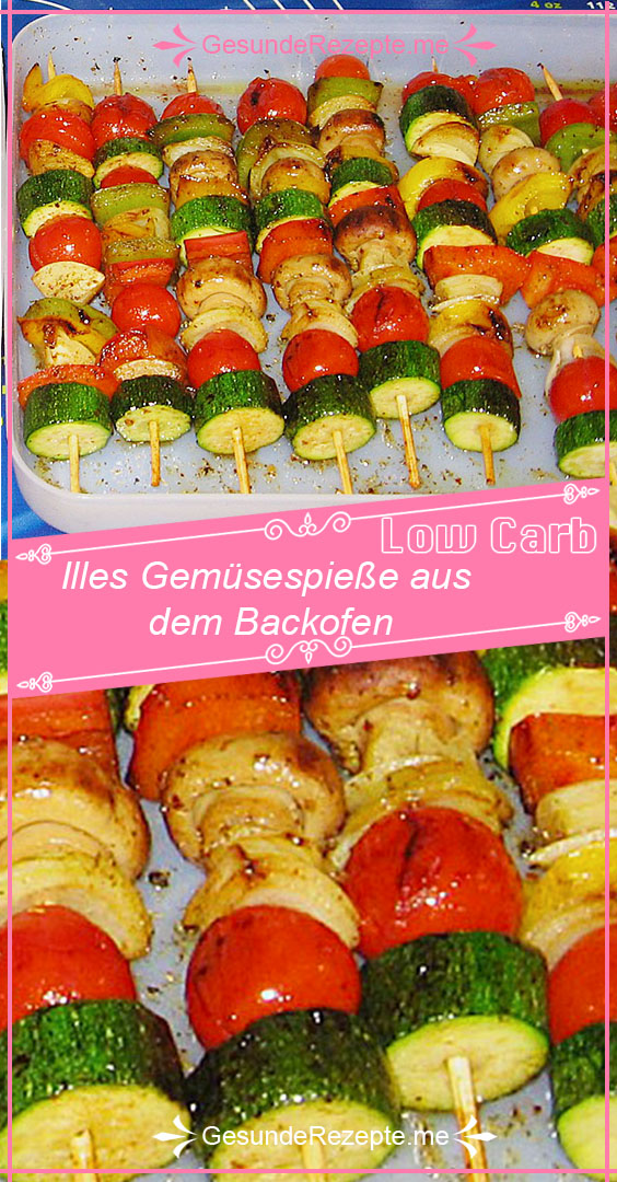 Alle Gemüsereste in die Form geben. Die vorbereiteten Gemüsestücke aufspießen und darauf legen.