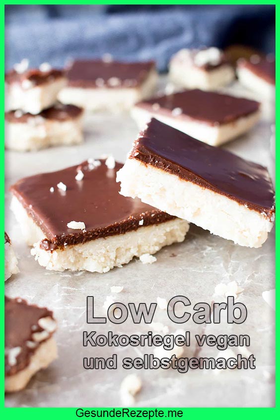 Während die Masse aushärtet, geht es an die Zubereitung der Schokolade. Dazu wird in das restliche flüssige Kokosöl das Kakaopulver und das jeweilige Süßungsmittel miteinander vermischt. Die Schokolade dann über die feste Kokosmasse löffeln und die Form nochmal in das Eisfach geben. Die fertigen Kokosriegel jetzt aus den Silikonförmchen befreien oder bei der Verwendung einer anderen Form mit einem angefeuchteten Messer die Riegel selbst in Form schneiden. Die Riegel anschließend im Kühlfach aufbewahren, bis sie alle verputzt sind
