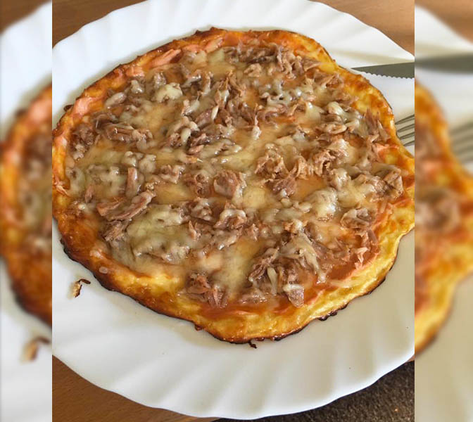 Danach aus dem Ofen nehmen, mit der „Sauce“ bestreichen und nach Belieben belegen (auf KH achten) und mit Reibekäse bestreuen.