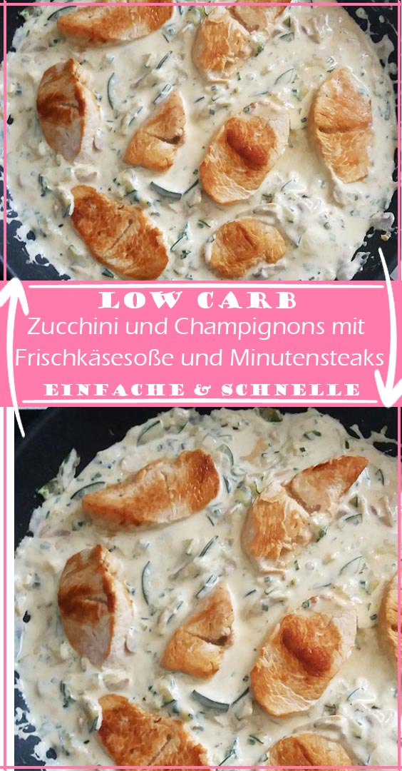Zucchini und Champignons mit Frischkäsesoße und Minutensteaks von der Pute