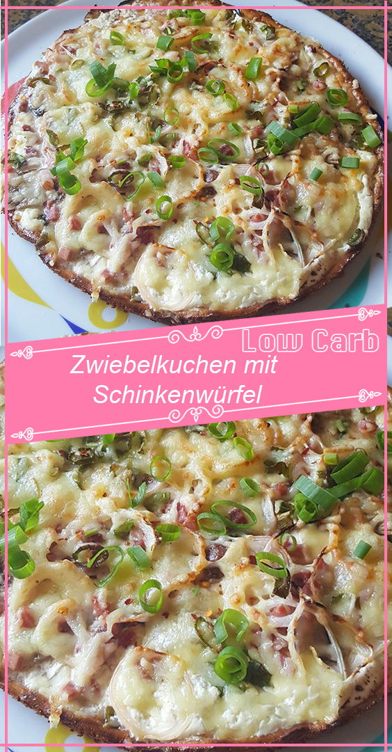 Ca 20 min backen und dann kurz aus dem Ofen holen und mit Creme fraiche bestreichen und die Zwiebelringe mit dem Schinkenwürfel belegen, darauf den Käse streuen und nochmal 10 min backen